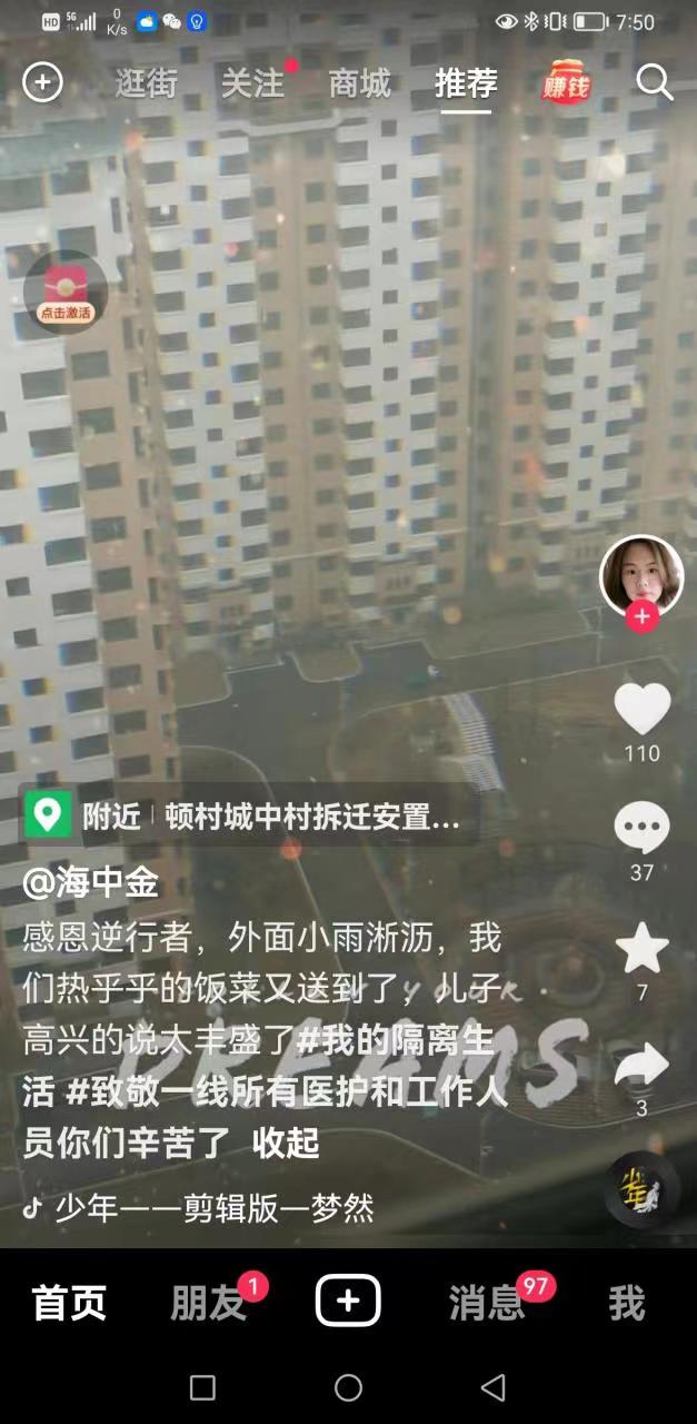 “感恩逆行者,外面小雨淅瀝,我們熱乎乎的飯菜又送到了,兒子高興地說太豐盛了……”頓村集中隔離點的一位母親,在抖音上說出了暖心的話語。
