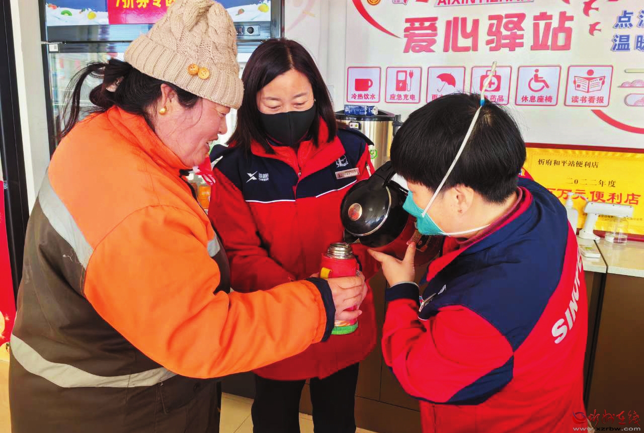 春節(jié)期間,來忻州古城的很多顧客來這里歇息喝水吃飯,環(huán)衛(wèi)工人、交警、快遞員等長時間在戶外的“馬路工作者”也來到這里休息,“愛心驛站”為他們提供了“洗洗臉、歇歇腳、熱熱飯、充充電、看看報”等貼心服務(wù)。中石化員工將進(jìn)一步豐富“愛心驛站”服務(wù)功能,根據(jù)戶外工作人員的實際需求不斷升級,為更多有需要的人提供更有效和更有溫度的幫助。