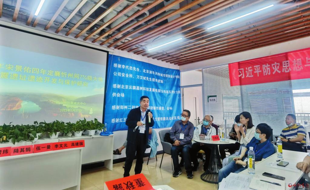 會上,李文元作了題為《1038年宋景佑四年定襄忻州間71/4級大地震遺址遺跡開發(fā)與保護(hù)研究》的主題報告,從大地震概況、歷史遺跡遺址野外考察情況、保護(hù)與開發(fā)構(gòu)想三個方面作了詳細(xì)闡述。1038年大地震,發(fā)生在宋朝景佑四年十二月十七日,震中位于定襄與忻州交界地帶,震級71/4。宋朝李燾在《續(xù)資治通鑒長編》120卷中記載該次地震為“壞廬舍,覆壓吏民”,忻州死亡近2萬人、傷5600余人。地震還造成“地裂泉涌”、山體錯動,形成多處滑坡和堰塞湖遺跡遺址。按照中國地震局和中國科協(xié)共同發(fā)布的《“十四五”防震減災(zāi)科普規(guī)劃》中“加強(qiáng)地震遺跡遺址的保護(hù)和發(fā)掘”的工作要求,李文元多次參加專家學(xué)者對該次大地震形成的地震遺跡遺址的野外科學(xué)考察,對地震地質(zhì)文化進(jìn)行了深入研究,并提出了保護(hù)和開發(fā)的初步方案。