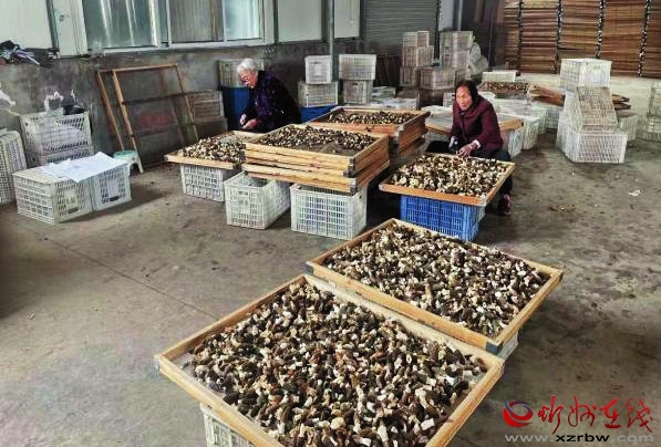 村里的閑散勞動力在羊肚菌篩選包裝車間務工。