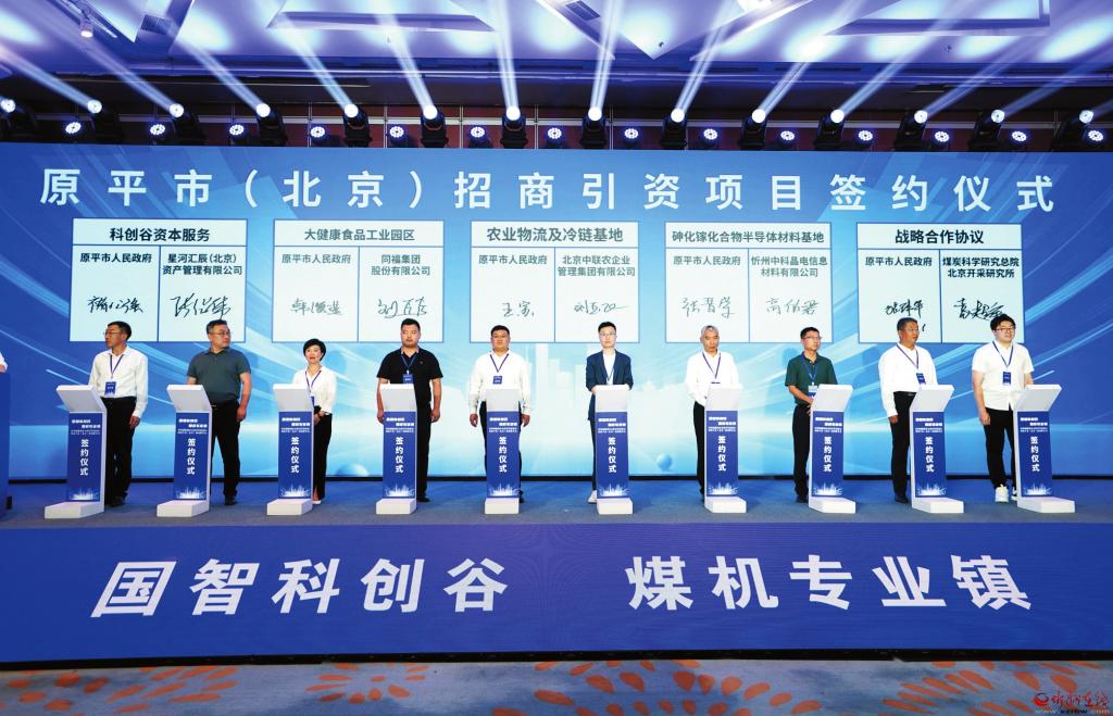 會(huì)上,原平市成功簽約了9個(gè)項(xiàng)目,總投資25.95億元,分別為北京極星農(nóng)業(yè)有限公司科創(chuàng)設(shè)施農(nóng)業(yè)項(xiàng)目,總投資4億元;國家智能網(wǎng)聯(lián)汽車創(chuàng)新中心智能駕駛產(chǎn)教研項(xiàng)目,總投資2億元;海克斯康中華區(qū)計(jì)量硬件智能制造項(xiàng)目,總投資5億元;北京中聯(lián)農(nóng)企業(yè)集團(tuán)農(nóng)業(yè)物流及冷鏈基地項(xiàng)目,總投資3億元;安徽同福集團(tuán)大健康食品工業(yè)園區(qū)項(xiàng)目,總投資6億元;金亞潤環(huán)保產(chǎn)業(yè)有限公司赤泥綜合利用項(xiàng)目,總投資3.5億元;忻州中科晶電信息材料有限公司砷化鎵化合物半導(dǎo)體材料基地項(xiàng)目,總投資2.45億元;北京中關(guān)村智酷雙創(chuàng)人才服務(wù)有限公司科創(chuàng)谷人才服務(wù)項(xiàng)目;星河匯辰(北京)資產(chǎn)管理有限公司科創(chuàng)谷資本服務(wù)項(xiàng)目。原平市政府與煤炭科學(xué)研究總院北京開采研究所簽訂了戰(zhàn)略合作協(xié)議。