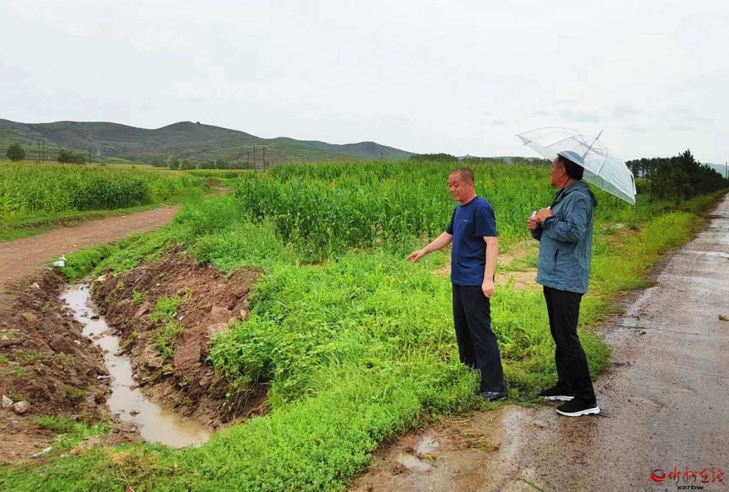 7月30日,神池縣八角鎮(zhèn)八角村駐村工作隊投身防汛一線排查隱患。 宮皇鈺攝