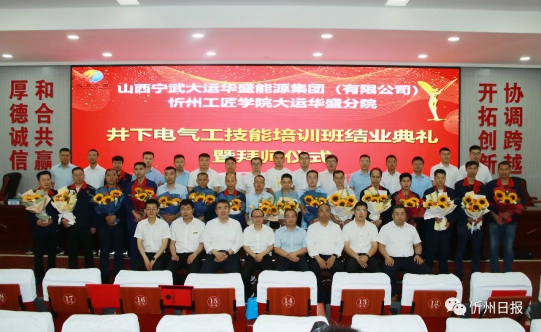 在今年大運華盛分院舉辦的第二期井下電氣工技能培訓(xùn)班結(jié)業(yè)典禮上,一場隆重的拜師儀式中,19名徒弟畢恭畢敬向師傅鞠躬、奉茶、獻花,師傅們則為徒弟送上工具包作為禮物。