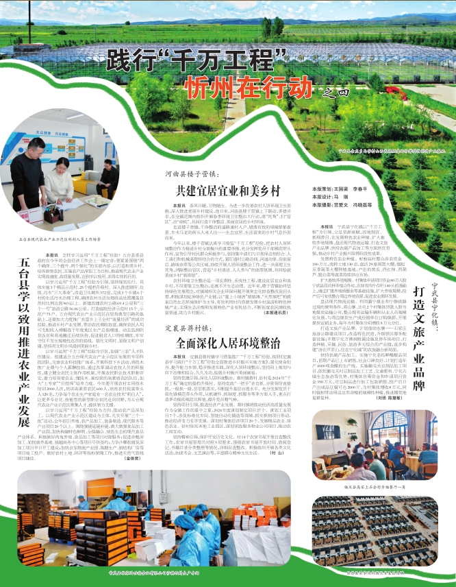 本報(bào)訊 怎樣學(xué)習(xí)運(yùn)用“千萬工程”經(jīng)驗(yàn)?五臺(tái)縣委縣政府在今年的全縣經(jīng)濟(jì)工作會(huì)上一錘定音:要緊緊圍繞“兩個(gè)確保、三個(gè)提升、兩個(gè)強(qiáng)化”的實(shí)質(zhì)內(nèi)容,以打造和美鄉(xiāng)村、培養(yǎng)新型農(nóng)民、實(shí)施農(nóng)產(chǎn)品深加工為目標(biāo),推進(jìn)現(xiàn)代農(nóng)業(yè)產(chǎn)業(yè)實(shí)現(xiàn)高速度、高質(zhì)量發(fā)展,達(dá)到學(xué)以致用、求得實(shí)效的目的。