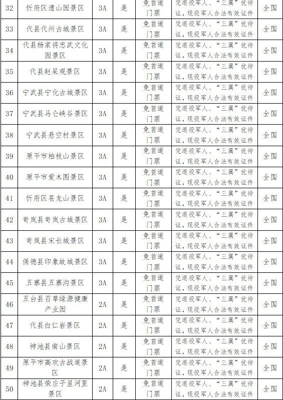 “五一”假期即將來臨,忻州市51家A級(jí)景區(qū)面向全國(guó)現(xiàn)役軍人、退役軍人和其他優(yōu)撫對(duì)象減免門票,熱烈歡迎廣大退役軍人暢游忻州!