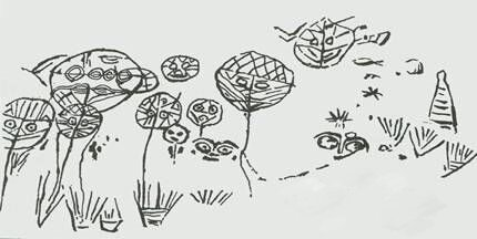 (上圖:新石器時(shí)代《稷神崇拜圖》;下圖:《稷神崇拜圖》復(fù)原圖。)