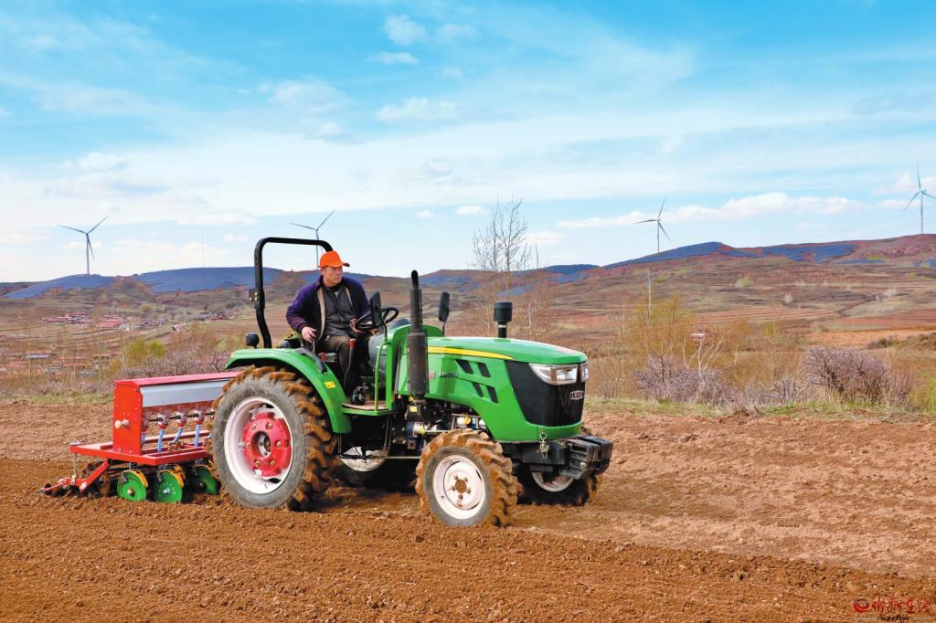 寧武縣余莊鄉(xiāng)三莊東村農(nóng)民正在進(jìn)行莜麥播種作業(yè)。 吳光宇攝