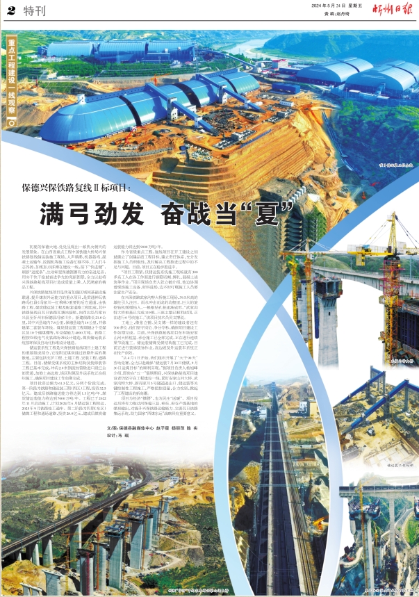 “從4月1日開始,我們組織開展了‘大干90天’勞動(dòng)競(jìng)賽,全力以赴確?!畠?chǔ)運(yùn)裝7月30日儲(chǔ)煤、9月30日運(yùn)煤目標(biāo)’的順利實(shí)現(xiàn)。”據(jù)項(xiàng)目負(fù)責(zé)人楊旭峰介紹,即使在“五一”假期期間,興保鐵路復(fù)線項(xiàng)目建設(shè)者仍堅(jiān)守在工程建設(shè)一線,緊盯安家山河大橋、武家溝特大橋、新馮家川3號(hào)隧道進(jìn)出口、儲(chǔ)運(yùn)裝等關(guān)鍵控制性工程施工,嚴(yán)格把控質(zhì)量,合力攻堅(jiān),掀起了工程建設(shè)的新高潮。
