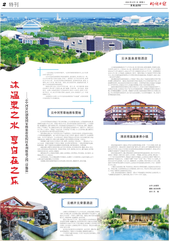 云中河溫泉旅游度假區(qū)集旅游度假、溫泉康養(yǎng)、休閑娛樂為一體,以云中河景觀生態(tài)廊為基礎(chǔ),形成“一廊兩園三區(qū)”的空間布局,面積22.75平方公里。區(qū)內(nèi)有多家高品質(zhì)度假酒店、溫泉特色民宿、營地、公寓等,共計(jì)143家、3087間房。房型、床位類型多樣,設(shè)施配套完善,可滿足不同類型游客的度假需求。