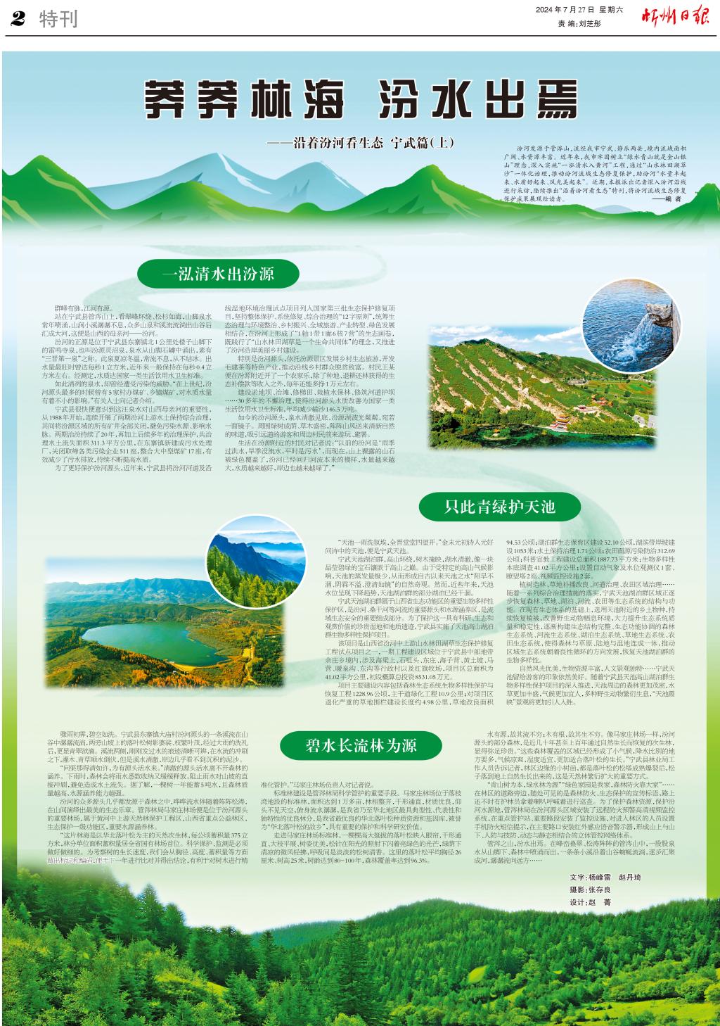 汾河發(fā)源于管涔山,流經(jīng)我市寧武、靜樂兩縣,境內(nèi)流域面積廣闊、水資源豐富。近年來,我市牢固樹立“綠水青山就是金山銀山”理念,深入實施“一泓清水入黃河”工程,通過“山水林田湖草沙”一體化治理,推動汾河流域生態(tài)修復(fù)保護,助汾河“水量豐起來、水質(zhì)好起來、風(fēng)光美起來”。近期,本報派出記者深入汾河沿線進(jìn)行采訪,陸續(xù)推出“沿著汾河看生態(tài)”特刊,將汾河流域生態(tài)修復(fù)保護成果展現(xiàn)給讀者?!?者