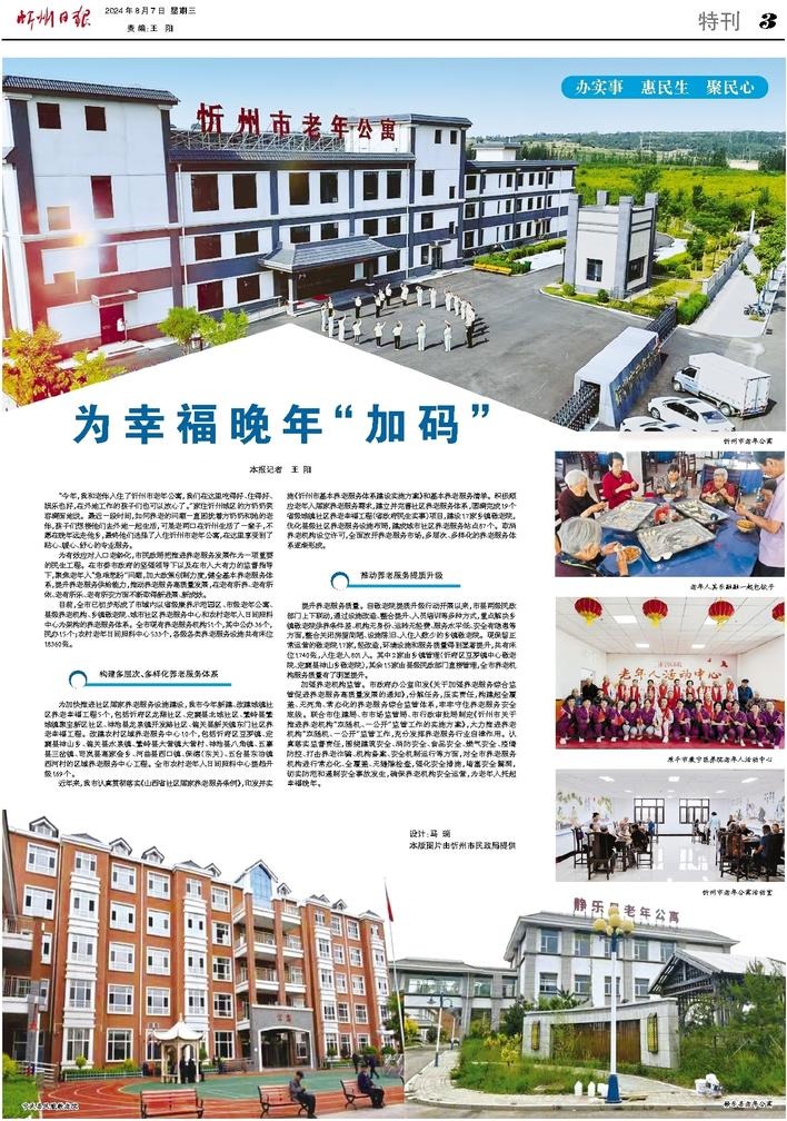 近年來,我市認(rèn)真貫徹落實(shí)《山西省社區(qū)居家養(yǎng)老服務(wù)條例》,印發(fā)并實(shí)施《忻州市基本養(yǎng)老服務(wù)體系建設(shè)實(shí)施方案》和基本養(yǎng)老服務(wù)清單。積極順應(yīng)老年人居家養(yǎng)老服務(wù)需求,建立并完善社區(qū)養(yǎng)老服務(wù)體系,圓滿完成19個(gè)省級(jí)城鎮(zhèn)社區(qū)養(yǎng)老幸福工程(省政府民生實(shí)事)項(xiàng)目,建設(shè)17家鄉(xiāng)鎮(zhèn)敬老院,優(yōu)化縣級(jí)社區(qū)養(yǎng)老服務(wù)設(shè)施布局,建成城市社區(qū)養(yǎng)老服務(wù)站點(diǎn)87個(gè)。取消養(yǎng)老機(jī)構(gòu)設(shè)立許可,全面放開養(yǎng)老服務(wù)市場(chǎng),多層次、多樣化的養(yǎng)老服務(wù)體系逐漸形成。