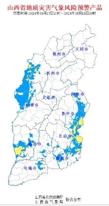 山西省自然資源廳和山西省氣象局2024年8月17日17時05分聯(lián)合發(fā)布地質災害氣象風險預警:受較強降水影響,預計2024年8月17日20時至18日20時,陽泉市郊區(qū)、平定縣;長治市潞城區(qū)、平順縣、黎城縣、壺關縣、武鄉(xiāng)縣;晉中市左權縣、和順縣、昔陽縣;運城市垣曲縣;忻州市五寨縣、岢嵐縣、河曲縣、保德縣;臨汾市吉縣、鄉(xiāng)寧縣;呂梁市離石區(qū)、興縣、臨縣等地的部分區(qū)域地質災害氣象風險預警等級為三級黃色,有較高地質災害氣象風險。請相關部門做好地質災害防治工作。