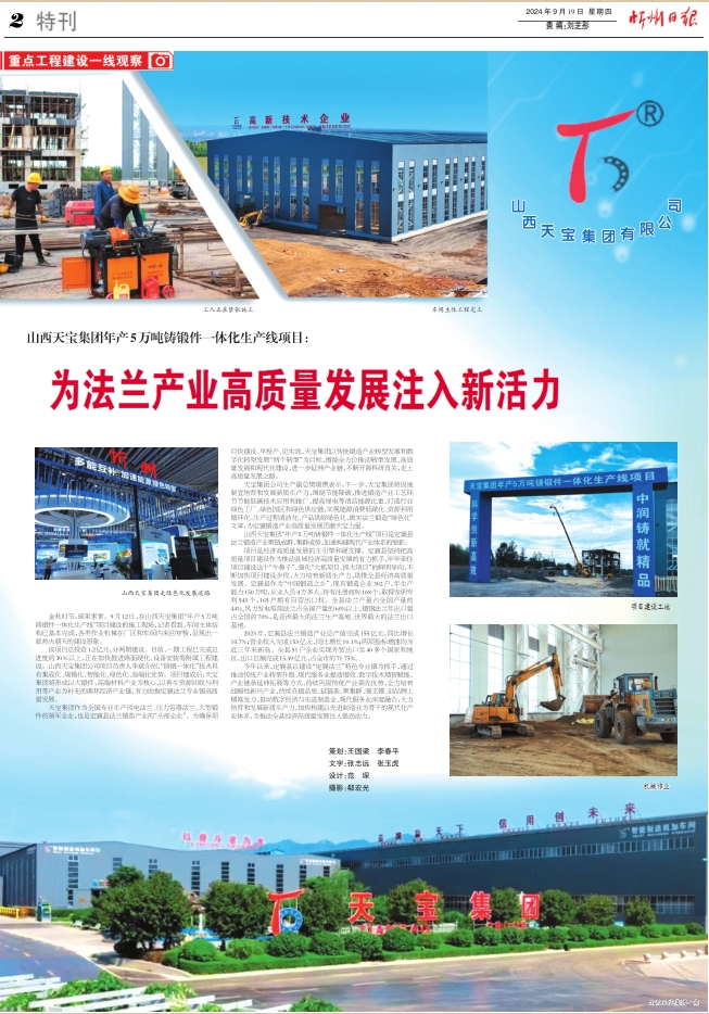 山西天寶集團(tuán)“年產(chǎn)5萬噸鑄鍛件一體化生產(chǎn)線”項目是定襄縣法蘭鍛造產(chǎn)業(yè)聚鏈成群、集群成勢,加速構(gòu)建現(xiàn)代產(chǎn)業(yè)體系的縮影。