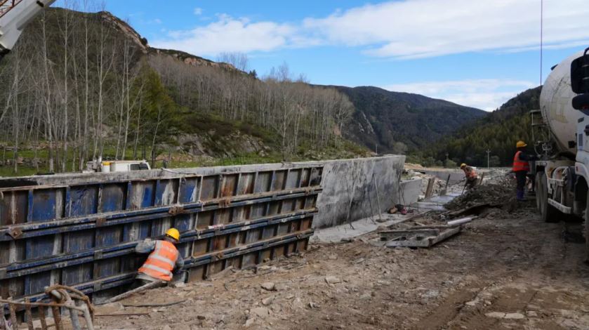 五臺山東線旅游公路工人正進(jìn)行擋墻施工作業(yè)