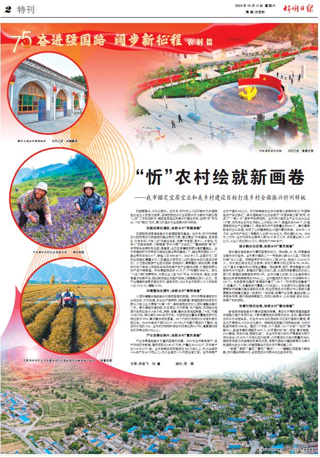 民族要復(fù)興,鄉(xiāng)村必振興。近年來(lái),忻州市以習(xí)近平新時(shí)代中國(guó)特色社會(huì)主義思想為指導(dǎo),堅(jiān)持把推進(jìn)鄉(xiāng)村全面振興作為新時(shí)代新征程“三農(nóng)”工作的總抓手,錨定宜居宜業(yè)和美鄉(xiāng)村建設(shè)目標(biāo),堅(jiān)持“實(shí)”字當(dāng)頭,下好“繡花”功夫,聚力打造鄉(xiāng)村全面振興忻州樣板。