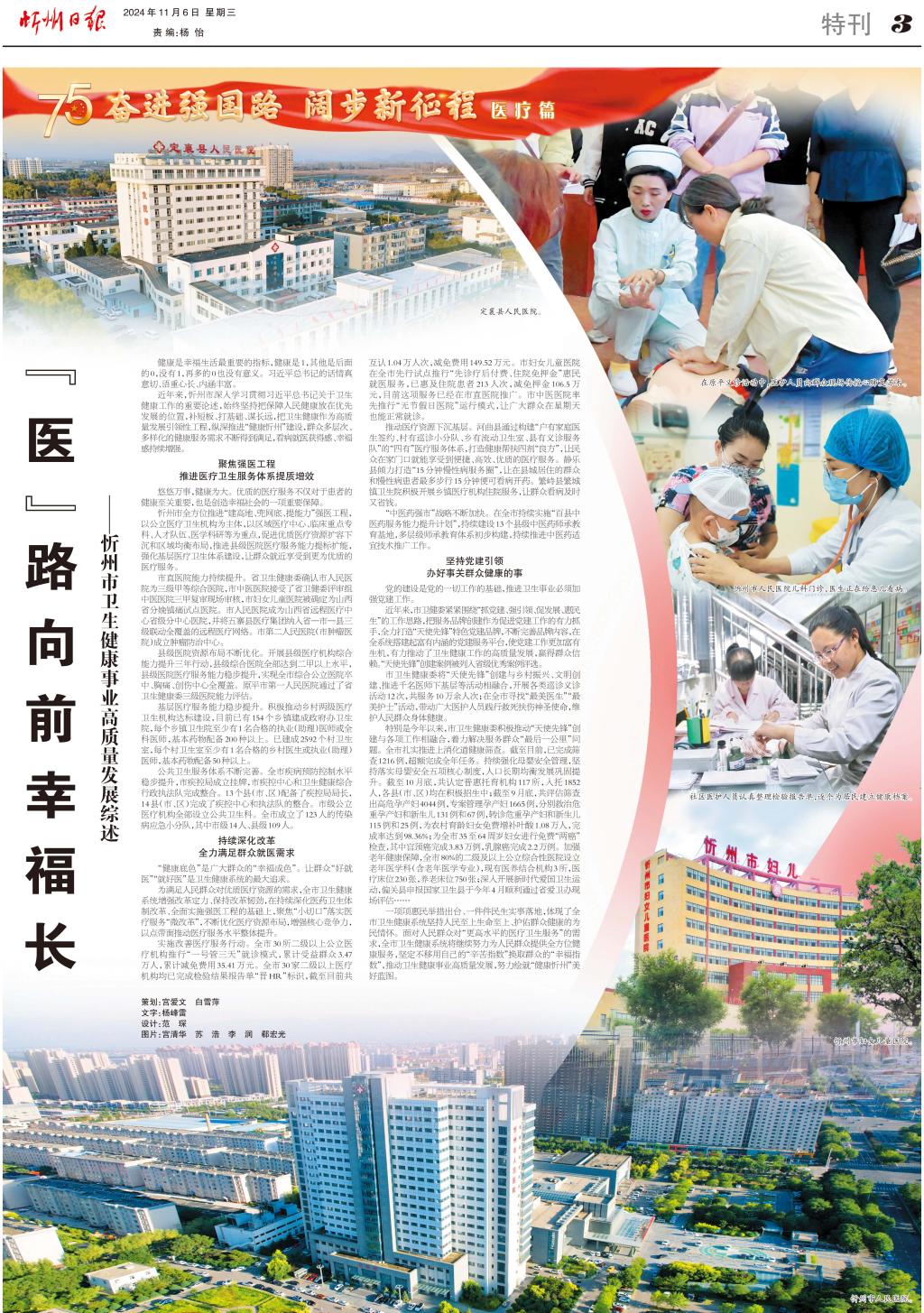 近年來,忻州市深入學習貫徹習近平總書記關(guān)于衛(wèi)生健康工作的重要論述,始終堅持把保障人民健康放在優(yōu)先發(fā)展的位置,補短板、打基礎、謀長遠,把衛(wèi)生健康作為高質(zhì)量發(fā)展引領性工程,縱深推進“健康忻州”建設,群眾多層次、多樣化的健康服務需求不斷得到滿足,看病就醫(yī)獲得感、幸福感持續(xù)增強。