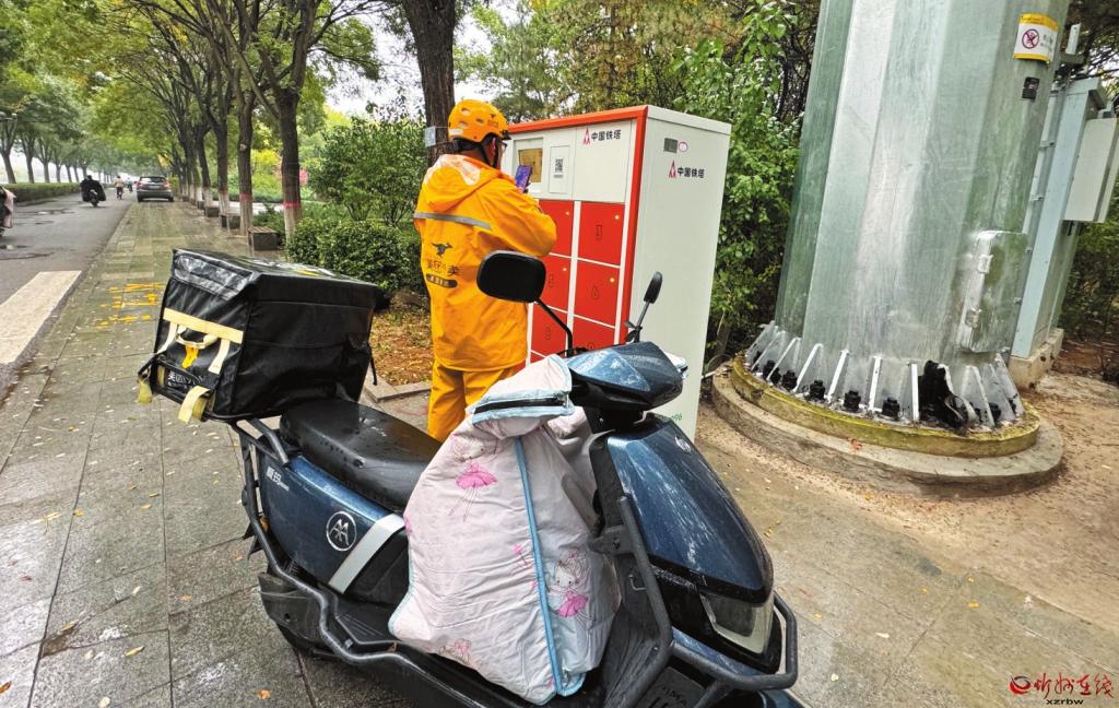 在建設(shè)路的換電柜前,美團(tuán)騎手小王拿出手機(jī)掃碼,倉(cāng)門(mén)自動(dòng)彈開(kāi),他熟練地將舊電池放入倉(cāng)內(nèi)并從另一個(gè)彈開(kāi)的倉(cāng)門(mén)中取出新電池并裝入電動(dòng)車(chē)內(nèi),全程不到1分鐘。