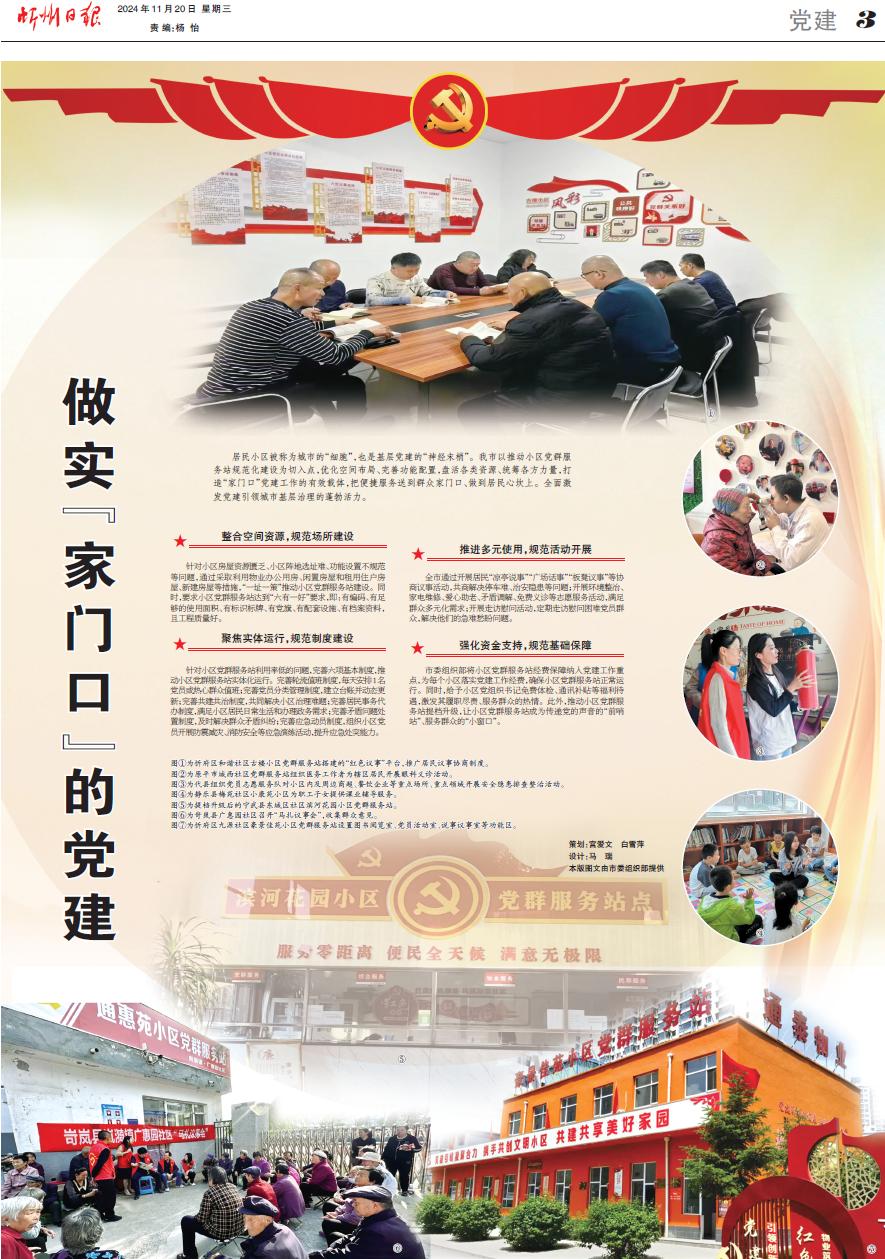 市委組織部將小區(qū)黨群服務(wù)站經(jīng)費(fèi)保障納入黨建工作重點(diǎn),為每個(gè)小區(qū)落實(shí)黨建工作經(jīng)費(fèi),確保小區(qū)黨群服務(wù)站正常運(yùn)行。同時(shí),給予小區(qū)黨組織書記免費(fèi)體檢、通訊補(bǔ)貼等福利待遇,激發(fā)其履職盡責(zé)、服務(wù)群眾的熱情。此外,推動(dòng)小區(qū)黨群服務(wù)站提檔升級(jí),讓小區(qū)黨群服務(wù)站成為傳遞黨的聲音的“前哨站”、服務(wù)群眾的“小窗口”。