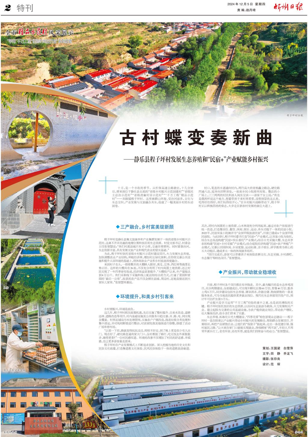 十月,是一個(gè)豐收的季節(jié)。從忻保高速公路駛出,十幾分鐘后,便來(lái)到位于靜樂(lè)縣北部的“省級(jí)鄉(xiāng)村振興示范創(chuàng)建村”“省級(jí)民主法治示范村”“省級(jí)清廉村居示范村”“‘千萬(wàn)工程’精品示范村”——雙路鎮(zhèn)程子坪村。這里被群山環(huán)抱、受汾河滋養(yǎng),文化與生態(tài)交織,產(chǎn)業(yè)發(fā)展與文旅融合共生,繪就了一幅美麗鄉(xiāng)村的生動(dòng)畫(huà)卷。