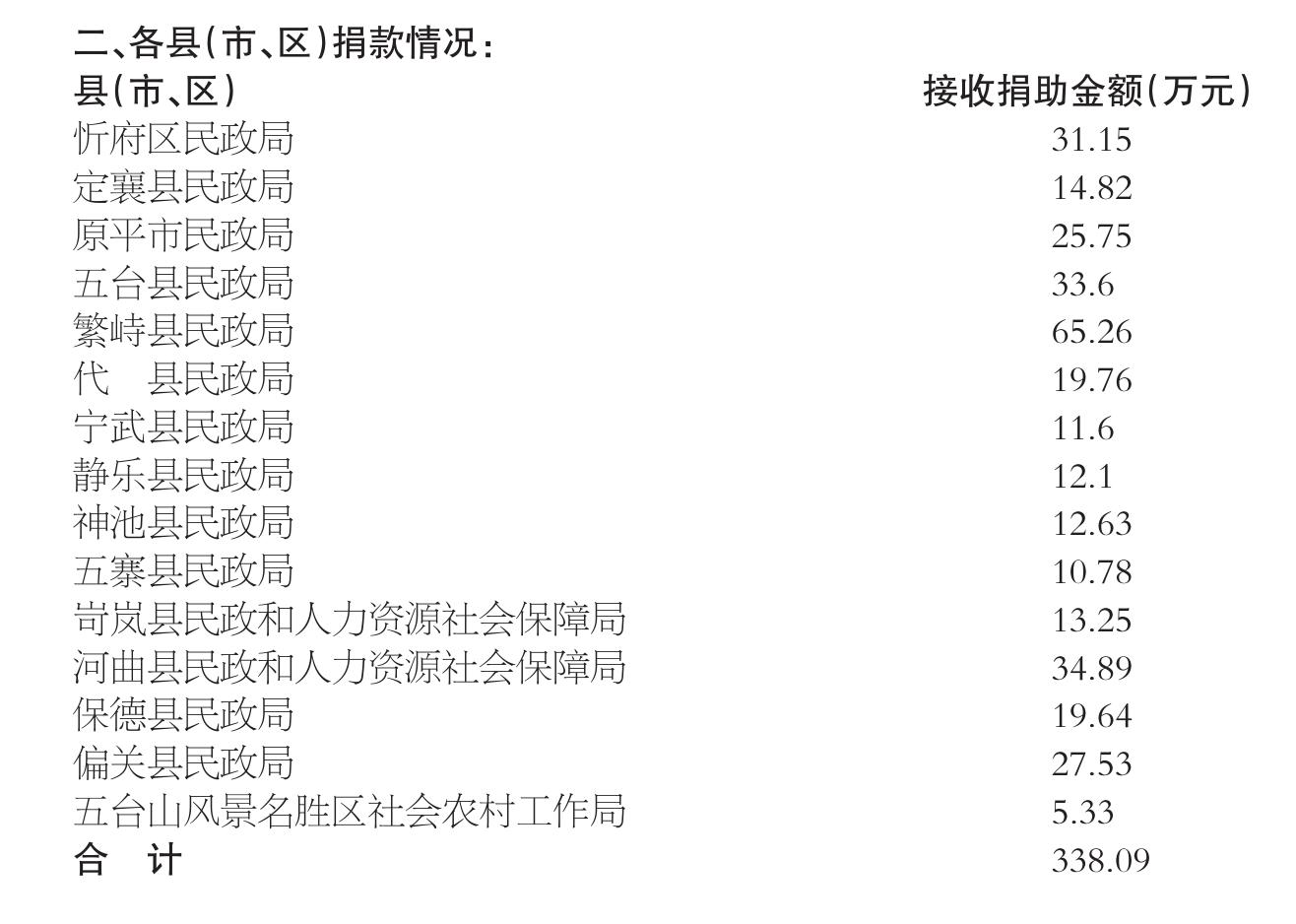 2024年11月22日,市委、市政府辦公室發(fā)出《關(guān)于開展“送溫暖、獻愛心”社會捐助活動的通知》,市四大班子領(lǐng)導(dǎo)和機關(guān)干部率先垂范,各縣(市、區(qū))、各單位高度重視,認真組織,廣大干部職工積極響應(yīng),“送溫暖、獻愛心”社會捐助活動有效開展。截至2025年4月底,市直140個單位組織干部職工參與捐助,共捐款766388元,各縣(市、區(qū))接收捐款338.09萬元,合計捐款4147288元,為解決全市人民群眾的生產(chǎn)生活問題起到了積極作用?,F(xiàn)將捐助情況公告如下(市直單位以捐助時間先后為序):