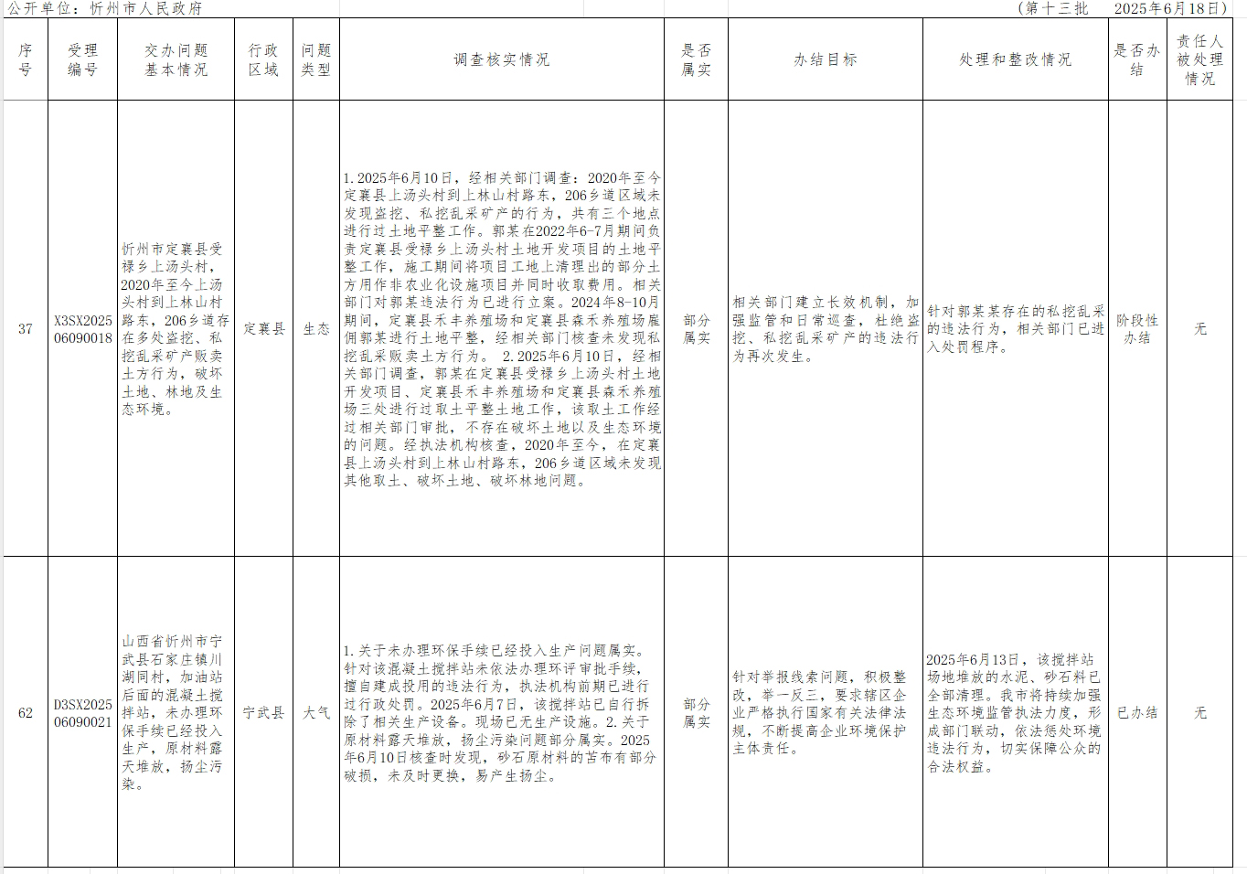 中央生態(tài)環(huán)境保護(hù)督察組群眾信訪舉報(bào)轉(zhuǎn)辦和邊督邊改公開(kāi)情況一覽表(第十三批)