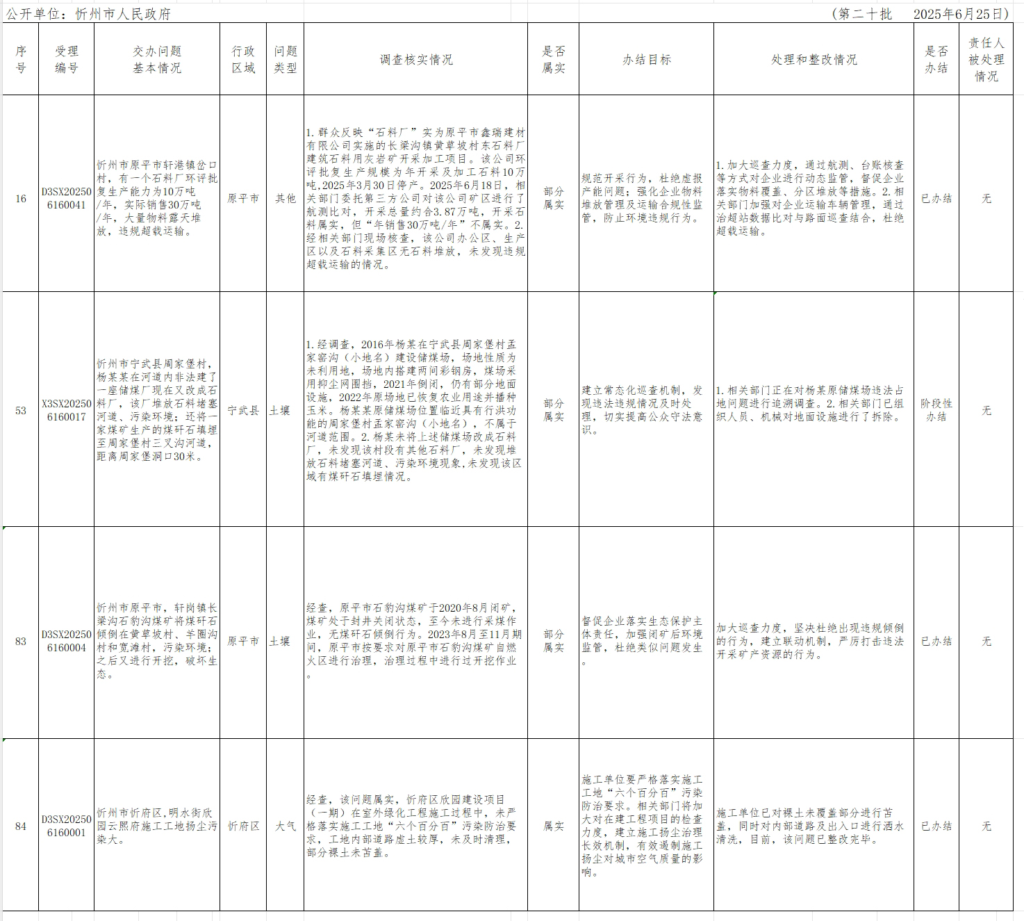中央生態(tài)環(huán)境保護(hù)督察組群眾信訪舉報(bào)轉(zhuǎn)辦和邊督邊改公開情況一覽表(第二十批)
