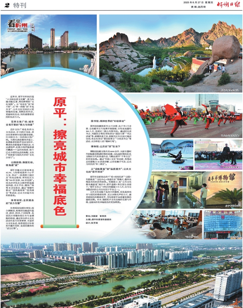 從今天起,《看見忻州》推出縣域篇,展示各縣(市)在基礎設施、文化場館、公園綠地等方面的成績,反映城市品質(zhì)和人民生活水平的提升。本報二版整版推出首篇《原平:擦亮城市幸福底色》,以饗讀者。