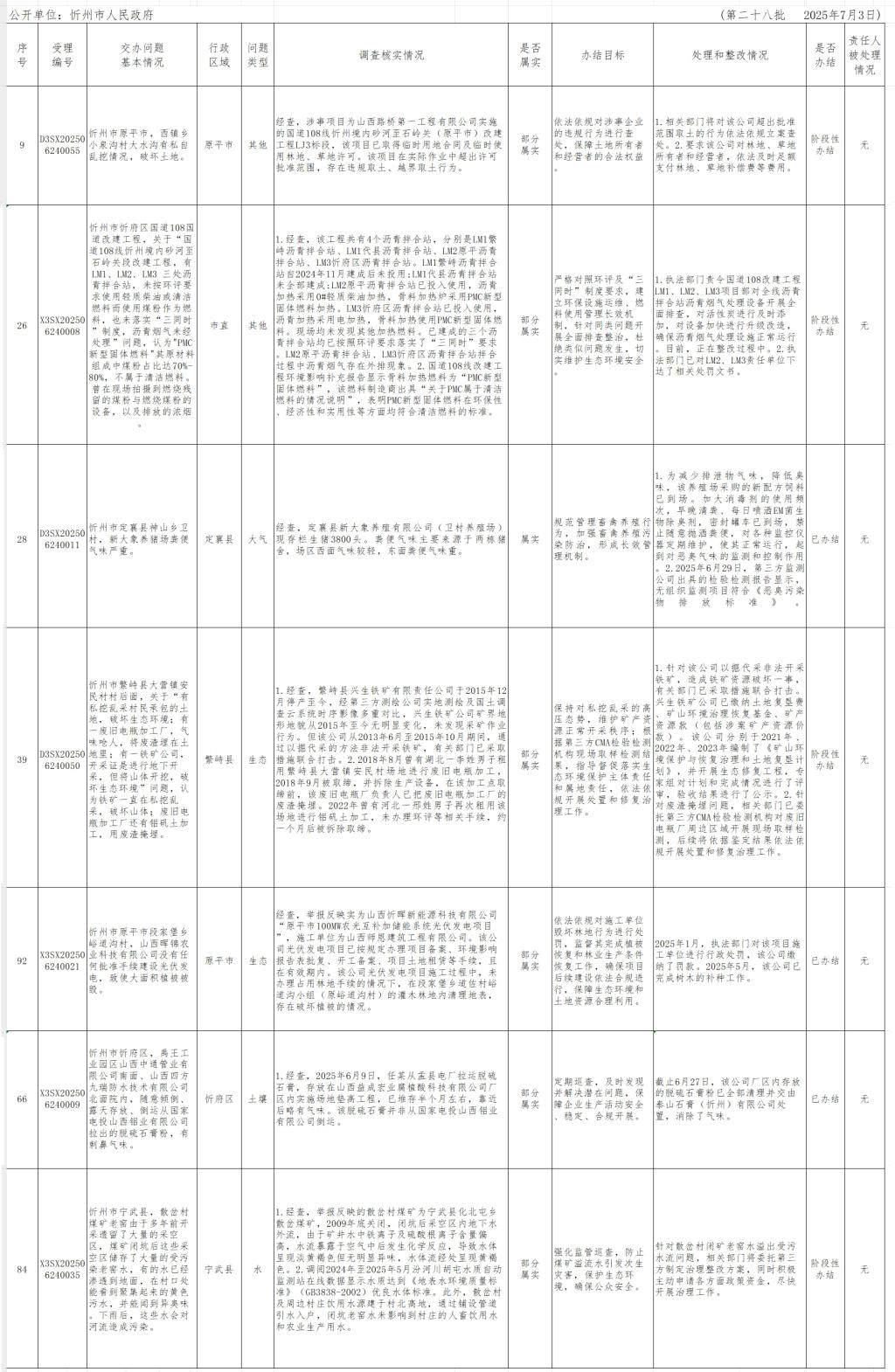 中央生態(tài)環(huán)境保護(hù)督察組群眾信訪舉報(bào)轉(zhuǎn)辦和邊督邊改公開情況一覽表(第二十八批)