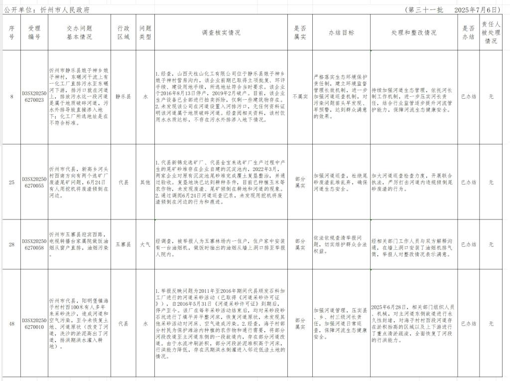中央生態(tài)環(huán)境保護(hù)督察組群眾信訪舉報(bào)轉(zhuǎn)辦和邊督邊改公開情況一覽表(第三十一批)