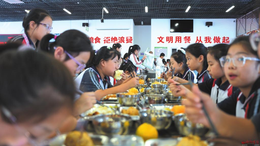 走進(jìn)長(zhǎng)城小學(xué),1535.25平方米的校內(nèi)餐廳里,900余名師生在老師引導(dǎo)下有序取餐、就餐,餐盤(pán)里葷素搭配的飯菜色香味俱全,孩子們的臉上滿是笑意?!耙郧鞍謰尮ぷ髅?,我每天得坐校車來(lái)回跑,現(xiàn)在有了午托太幸福了!午餐每天不重樣,有肉有湯,比媽媽做得還香!”六年級(jí)學(xué)生李宸慶捧著飯菜笑著說(shuō)。