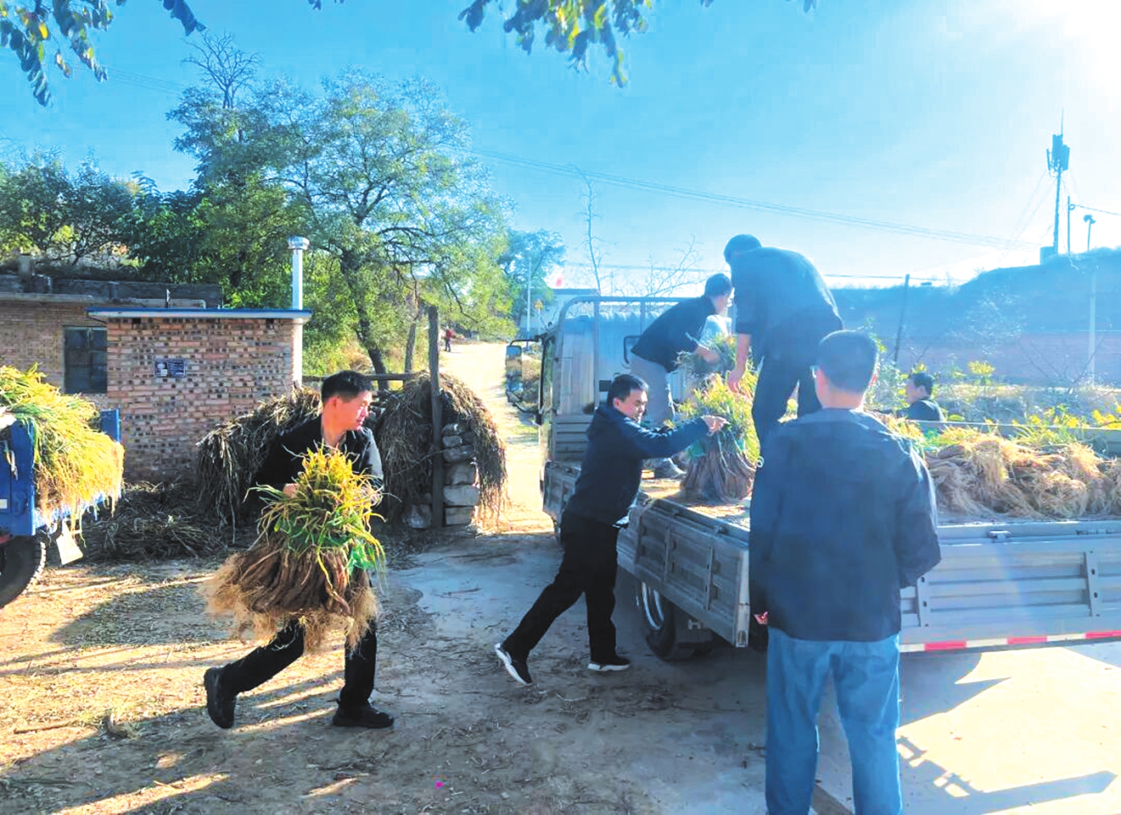 駐村工作隊員與村民齊心協(xié)力,將豐收的紅蔥集中裝車,準備發(fā)往市場。