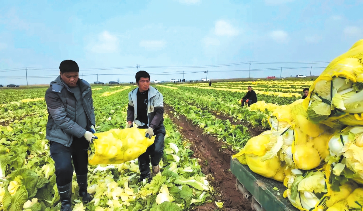 村民正在收獲白菜