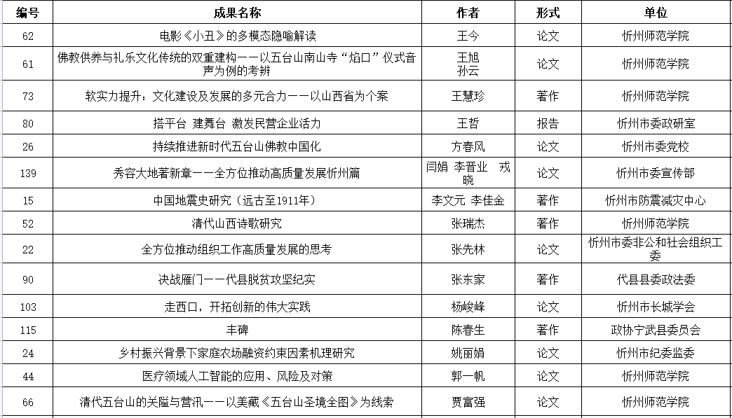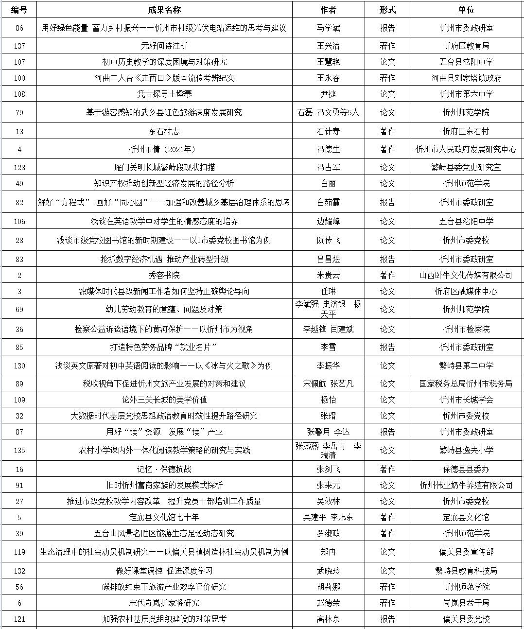 附件:忻州市社會(huì)科學(xué)研究優(yōu)秀成果評獎(jiǎng)擬獲獎(jiǎng)名單