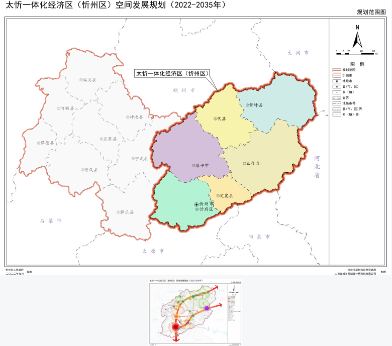 堅持把全方位推動高質(zhì)量發(fā)展作為總體目標(biāo),把一體化發(fā)展作為根本遵循,以基礎(chǔ)設(shè)施建設(shè)為先導(dǎo),以產(chǎn)業(yè)園區(qū)為載體,以區(qū)域文化為紐帶,將忻州區(qū)打造為“融入京津冀和服務(wù)大循環(huán)的門戶樞紐、山西中部城市群先進(jìn)制造高地、世界級文化休閑康養(yǎng)目的地、有機(jī)旱作農(nóng)業(yè)優(yōu)勢特色產(chǎn)業(yè)標(biāo)桿地、生態(tài)秀美的高品質(zhì)宜居地”。到2025年,國土空間開發(fā)與保護(hù)的協(xié)調(diào)性大幅提升,山西中部城市群“北引擎”打造初見成效;到2035年,人與自然和諧共生的國土空間格局基本形成。