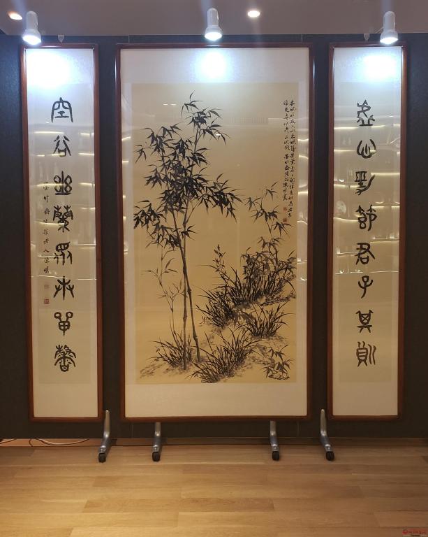 這便是近期在晉中市辰興頤郡美學中心舉辦的陳明書畫作品展。布展別具一格,作品精美大氣,共展出了我省書畫藝術家陳明先生的20多幅字畫,他的蘭竹繪畫和書法作品清新、俊逸、淡雅、高古,讓參觀者贊不絕口。