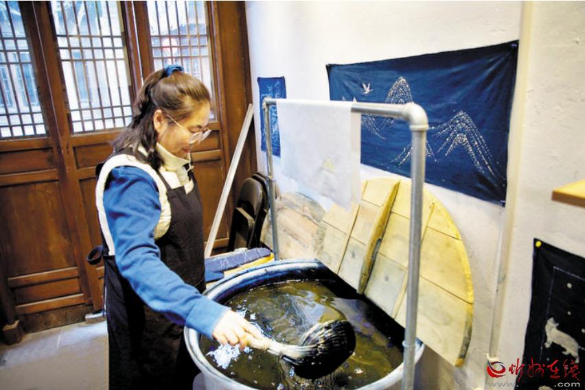 “染缸是我最寶貝的東西。我對(duì)它就像對(duì)待孩子,不能冷著、熱著、累著、餓著?!壁w慧說(shuō),天然染料的缸需要“養(yǎng)”,冬天冷了烤暖氣,夏天熱了吹空調(diào),還要不時(shí)添加?xùn)|西,“這個(gè)缸我‘養(yǎng)’了四年多,叫它‘藍(lán)寶寶’?!?/span>