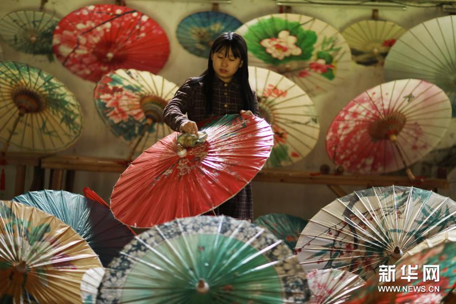 2019年6月,“赤水油紙傘制作技藝”被列入貴州省級(jí)非物質(zhì)文化遺產(chǎn)名錄。當(dāng)?shù)匾劳写笸沛?zhèn)的旅游產(chǎn)業(yè),采取政策引導(dǎo)、資金扶持等方式,鼓勵(lì)民間藝人重拾油紙傘制作技藝。油紙傘產(chǎn)品投放旅游市場(chǎng),深受消費(fèi)者青睞。油紙傘制作不僅帶動(dòng)眾多群眾就業(yè)增收,也讓油紙傘技藝重新煥發(fā)生機(jī)。新華社發(fā)(王長育 攝)
