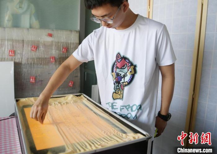 滕琦昕的沙畫作品 受訪者提供 中新網(wǎng)長(zhǎng)春7月5日電 (孫博妍)吉林動(dòng)畫學(xué)院畢業(yè)生滕琦昕,近日用沙畫的形式重現(xiàn)了紅軍長(zhǎng)征奇跡,并將創(chuàng)作過程錄制成視頻上傳到了網(wǎng)絡(luò),獲得大量贊譽(yù)。記者5日在學(xué)校的工作室內(nèi)看到了滕琦昕創(chuàng)作的沙畫。 滕琦昕介紹,這原本是他的畢業(yè)設(shè)計(jì)作品,但在創(chuàng)作過程中,不少沙畫愛好者也都加入進(jìn)來,最終包括滕琦昕在內(nèi)的8名畢業(yè)生一起創(chuàng)作出42幅靜態(tài)沙畫。
