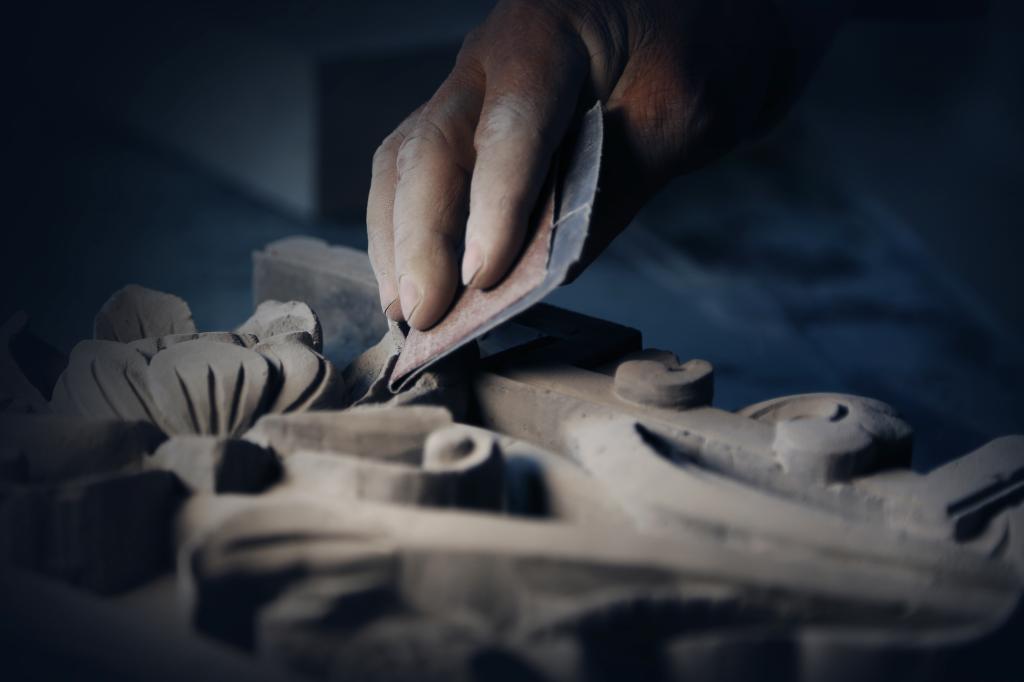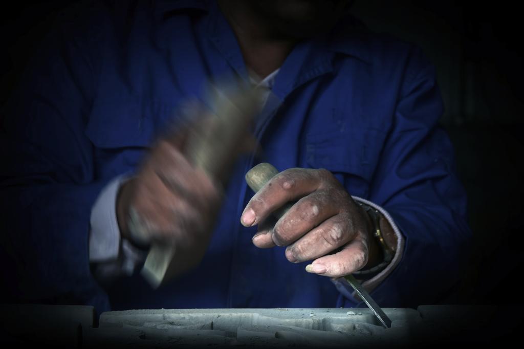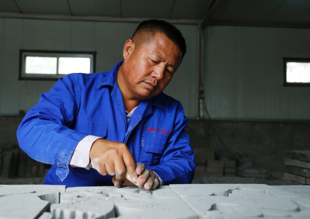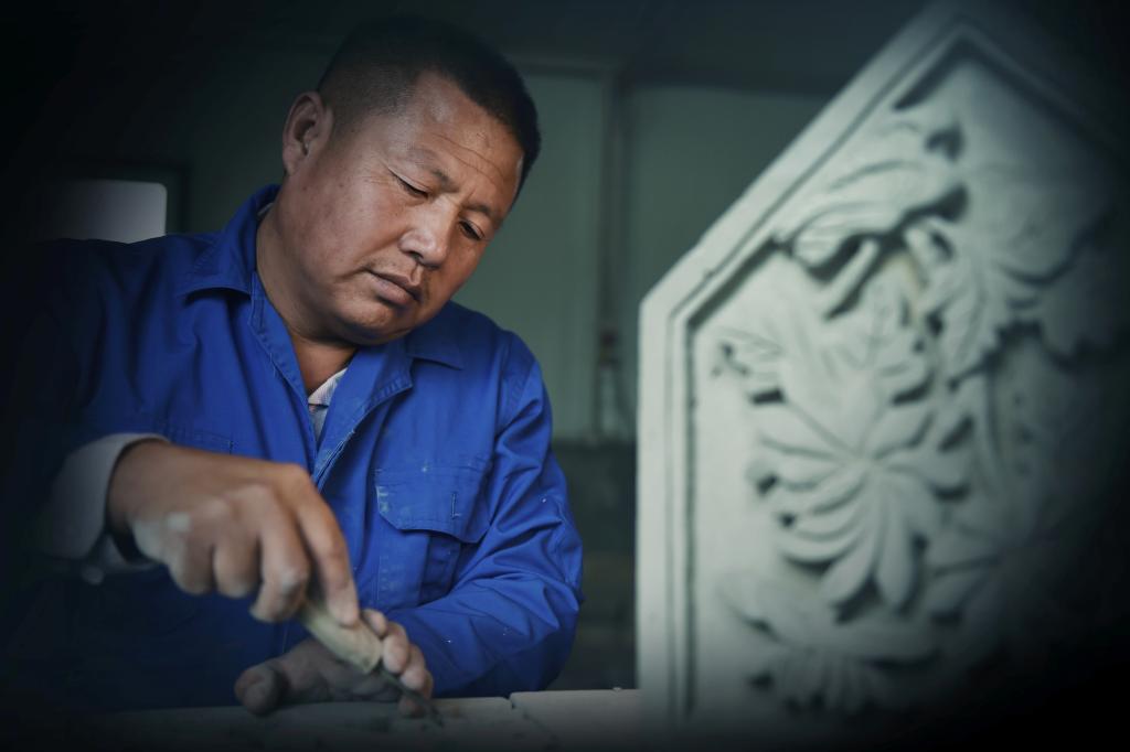 說(shuō)起磚雕的未來(lái),王鎖貴憂心忡忡?!巴_(tái)磚雕”——這個(gè)在王鎖貴手上“復(fù)活”的傳統(tǒng)技藝,現(xiàn)在面臨后繼無(wú)人的窘境。王鎖貴廠子里的工人,都在45歲以上。年輕人不想學(xué),主要是“嫌臟”——雕刻時(shí)青磚粉塵彌漫,還得隨雕隨用嘴吹,現(xiàn)在看來(lái),還沒(méi)有很好的解決辦法。
