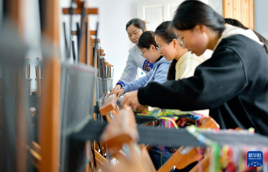 春暖花開時(shí)節(jié),湖北省宣恩縣西蘭卡普傳承基地迎來各地的學(xué)生前來研學(xué)。學(xué)生們?cè)谶@里了解土家織綿文化、學(xué)習(xí)傳統(tǒng)手工技藝,感受非遺文化的魅力。西蘭卡普是一種土家織錦,色彩鮮明,紋樣美觀,其編織技藝被列入國(guó)家級(jí)非物質(zhì)文化遺產(chǎn)名錄。新華社發(fā)(宋文攝)