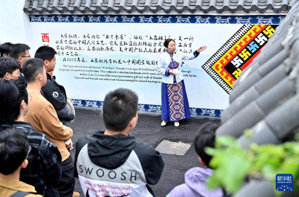 4月24日,湖北民族大學(xué)的學(xué)生在宣恩縣參加西蘭卡普主題研學(xué)活動(dòng)。
