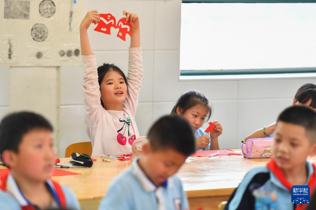 5月15日,在長沙市天心區(qū)紅衛(wèi)小學,學生在剪紙藝術(shù)課上展示作品。