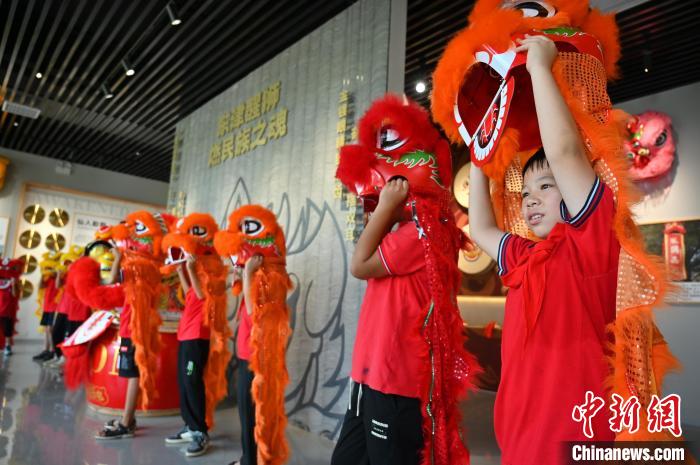 小朋友學(xué)習(xí)醒獅表演。 俞靖 攝