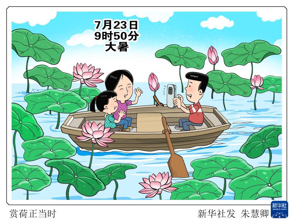 新華社天津7月22日電(記者周潤?。靶∈畈凰銦?,大暑三伏天?!北本r間7月23日9時50分將迎來二十四節(jié)氣中夏季的最后一個節(jié)氣——大暑。此時節(jié),雖然溫高而氣濕,但也是荷花開得最盛的時候,青翠欲滴的荷葉、亭亭玉立的蓮蓬、紅白輝映的荷花,令人賞心悅目。