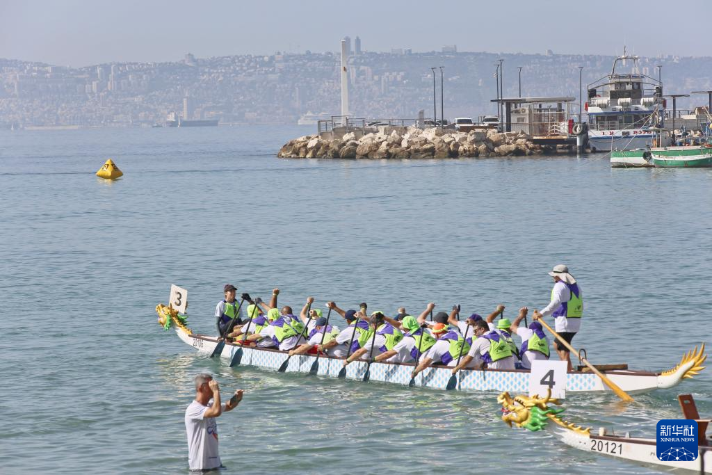 活動當(dāng)天在阿卡老城城墻旁一處海灘舉行,現(xiàn)場掛起大紅燈籠和中國結(jié),洋溢著熱鬧的東方氣息。龍舟賽設(shè)置男子組、女子組、混合組等比賽類別,參賽選手既有年近八旬的老人,也有青少年,還有部分殘障人士。與龍舟賽同時舉行的還有中華傳統(tǒng)文化展演及體驗活動,太極拳、書法、國畫、舞龍、抖空竹等吸引眾多當(dāng)?shù)孛癖娪^賞互動。