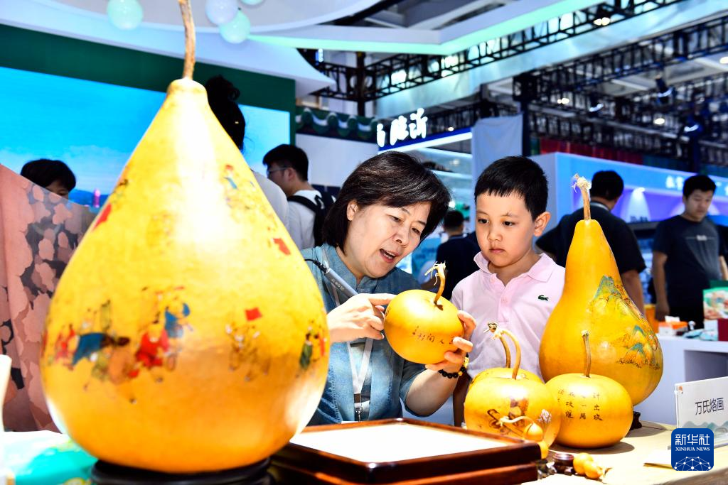 第四屆中國國際文化旅游博覽會、第二屆中華傳統(tǒng)工藝大會14日至18日在山東濟南舉行。展會期間,中華非物質(zhì)文化遺產(chǎn)和優(yōu)秀文創(chuàng)產(chǎn)品匯聚一堂、各展風采,給參觀者呈上一道文化大餐。新華社記者 郭緒雷 攝