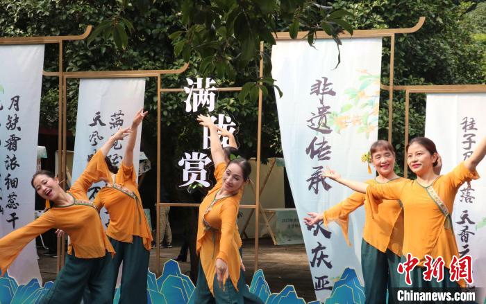 在《桂花雨》舞蹈表演中,2023“滿隴賞桂”非遺傳承活動拉開帷幕。 王題題 攝