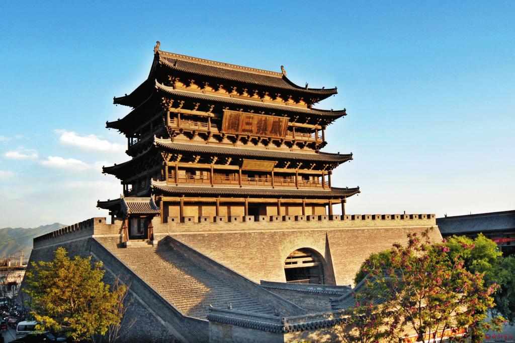 萬(wàn)里長(zhǎng)城第一樓——代縣古城邊靖樓。明洪武七年(1374年)始建,成化十二年(1476年)重建,由磚券洞臺(tái)基和三層四檐歇山頂樓身組成,基底東西長(zhǎng)43.3米,南北寬33.3米,臺(tái)高13.3米。樓身高26.7米,總高度達(dá)到40米。樓身面闊7間29.65米,進(jìn)深5間19.30米。二層檐柱之上施五踩重翹斗拱,三層檐下施五踩重昂。每層四周呈上下重疊柱網(wǎng)布局,四周?chē)龋瑒e具特色。斗拱非常規(guī)整,梁架精致奇巧,建造恢宏威嚴(yán),是中國(guó)最大的木質(zhì)鼓樓,比山海關(guān)靖邊樓高15米,比嘉峪關(guān)城樓高17米,比天安門(mén)高5.3米,被長(zhǎng)城專(zhuān)家考定為萬(wàn)里長(zhǎng)城第一樓。