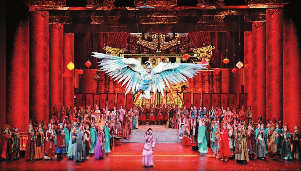 戲劇月的開幕大戲是詩樂舞大秀《天下歸心》,作品在舞臺空間上立體展示了濃郁國風(fēng)特色的時(shí)空布局和視覺風(fēng)格,劇場內(nèi)敦煌飛天式實(shí)景呈現(xiàn),“詩”有相、“樂”有形、“舞”傳神,再現(xiàn)了雁門關(guān)外的金戈鐵馬,以德化民的泰安繁榮,流傳千年的文景之治……作品通過大漢王朝和匈奴之間在雁門關(guān)地域,從戰(zhàn)爭到盟約、再到通婚的歷史故事,表現(xiàn)出“天下一家”的理念。觀眾身臨其境地享受到了一場不可多得的視聽和精神盛宴。該劇也是忻州大劇院建成以來首次對外公開演出。
