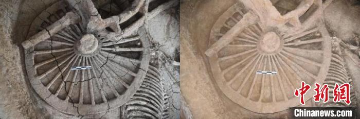 圖為山東曲阜車馬坑遺址修復(fù)前后對(duì)比圖。河南省文物考古研究院 供圖